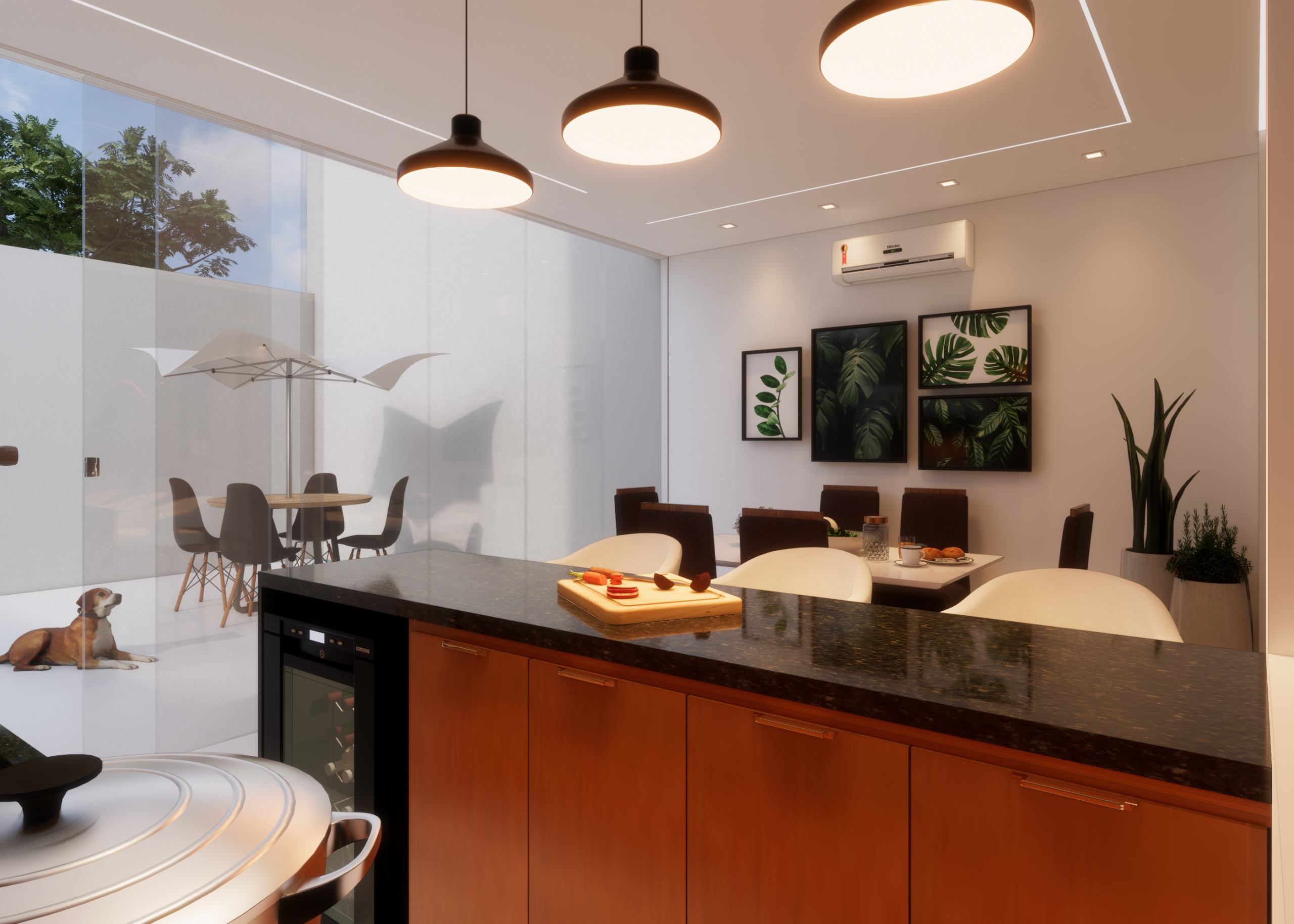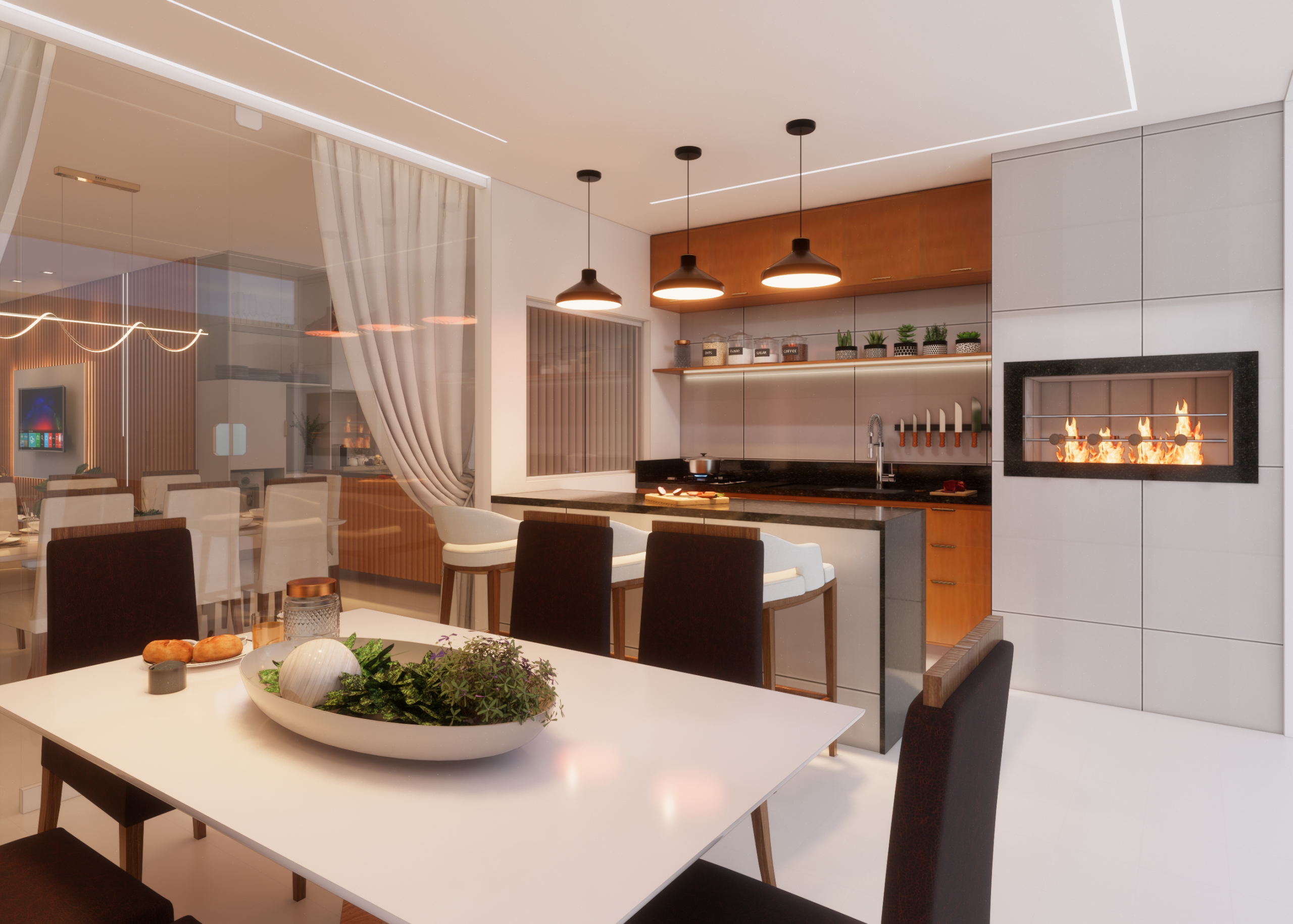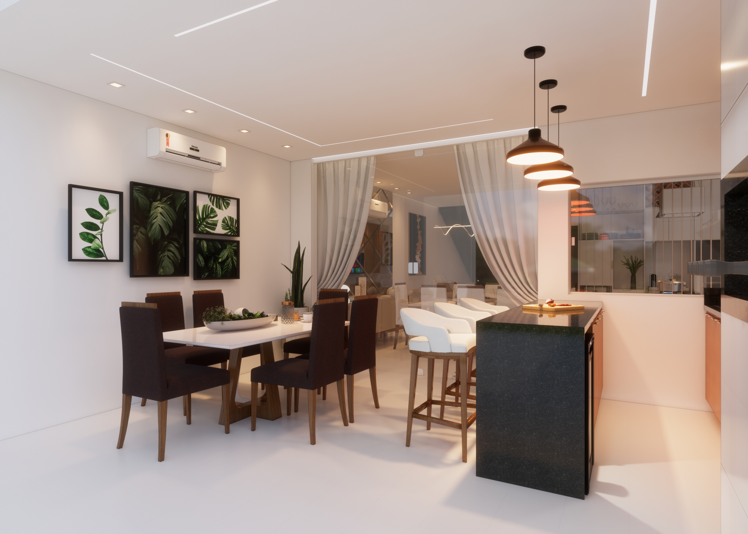 Apresentamos o projeto em 2D com a proposta espacial consolidada em 3D, permitindo uma visualização realista do ambiente.